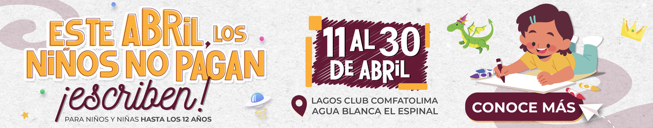 Este abril, los niños no pagan… ¡escriben! 10 abril, 2026 ComfaTolima abre sus centros recreacionales sin costo para niños hasta los 12 años y habilita un espacio de escritura creativa…