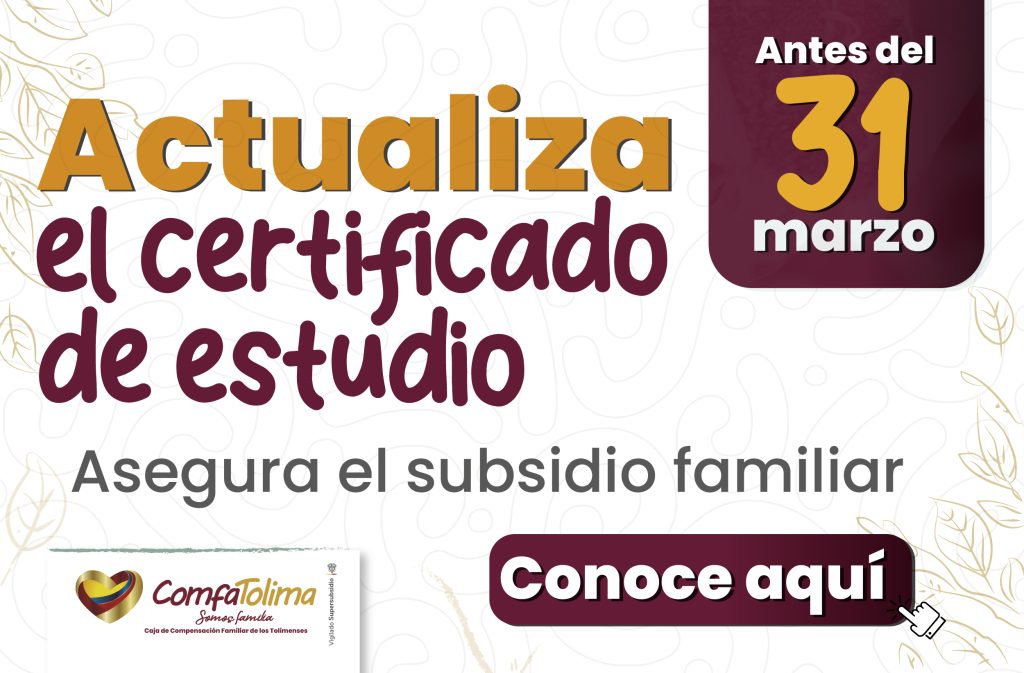 Mantener actualizado el certificado de estudio es clave para garantizar el acceso continuo al subsidio familiar y a los beneficios que ofrece ComfaTolima a sus afiliados.