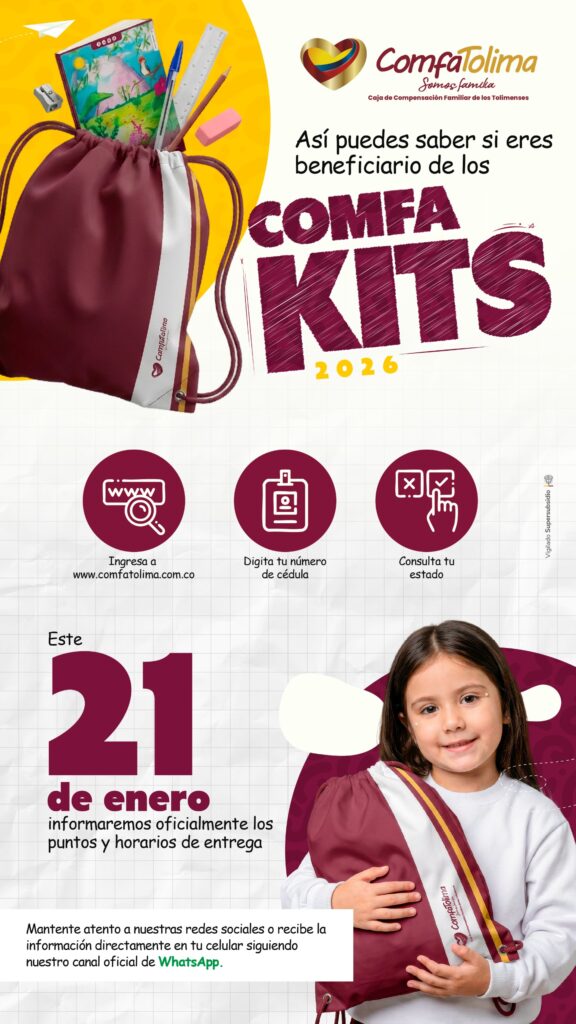 A partir de este jueves 15 de enero, ComfaTolima habilitará el módulo de consultas en su página web www.comfatolima.com.co, donde los afiliados podrán verificar si cumplen con los requisitos para acceder al ComfaKit 2026.