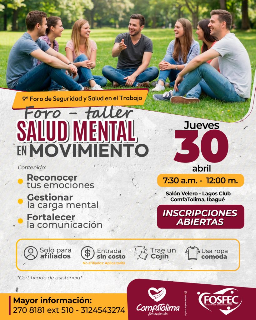 Por eso, ComfaTolima te invita a participar en el 9° Foro de Seguridad y Salud en el Trabajo, un espacio práctico y actualizado para fortalecer el bienestar emocional en el entorno laboral.