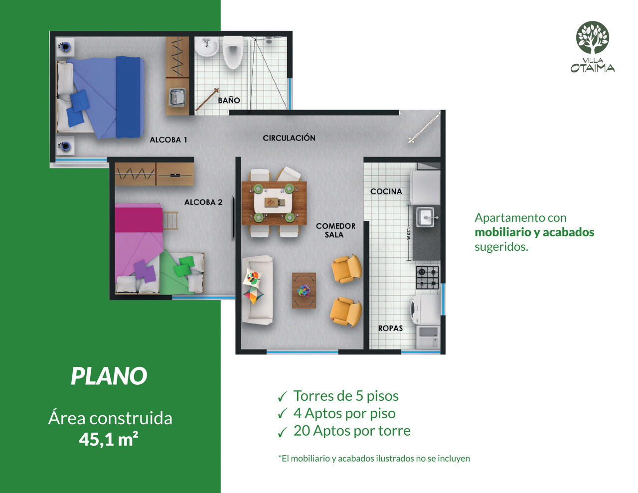 Villa Otaima es un novedoso proyecto de vivienda multifamiliar de interés social prioritario VIP, que consta de 220 unidades de vivienda, con servicios básicos.