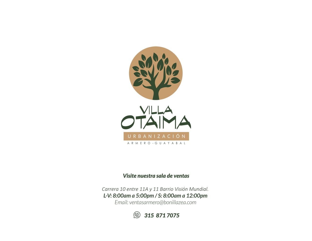 La Caja de Compensación Familiar del Tolima “ComfaTolima” en cumplimiento de su labor social y su apuesta por el desarrollo, es líder en proyectos de vivienda de interés social, es por esto que ha desarrollado el Proyecto Villa Otaima, ubicado en Armero Guayabal, en alianza entre la Constructora Bonilla Zea SAS , con el propósito de que más hogares adquieran una vivienda propia.